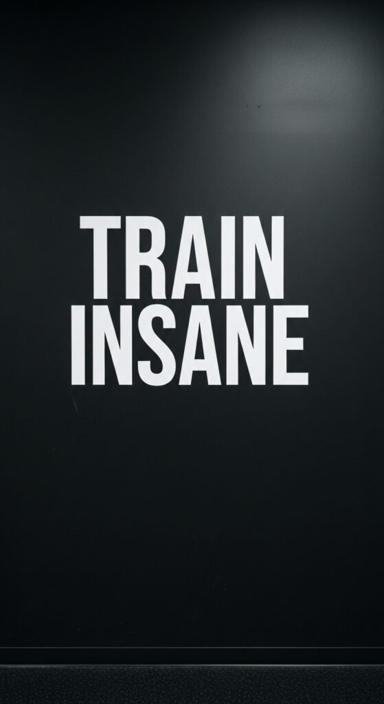 A bold wall featuring large black typography quotes on a white or gray background. Words like “Discipline,” “Strength,” and “Consistency” dominate the space, creating a powerful visual impact. The typography is modern and sharp, reinforcing a mindset of determination and resilience.